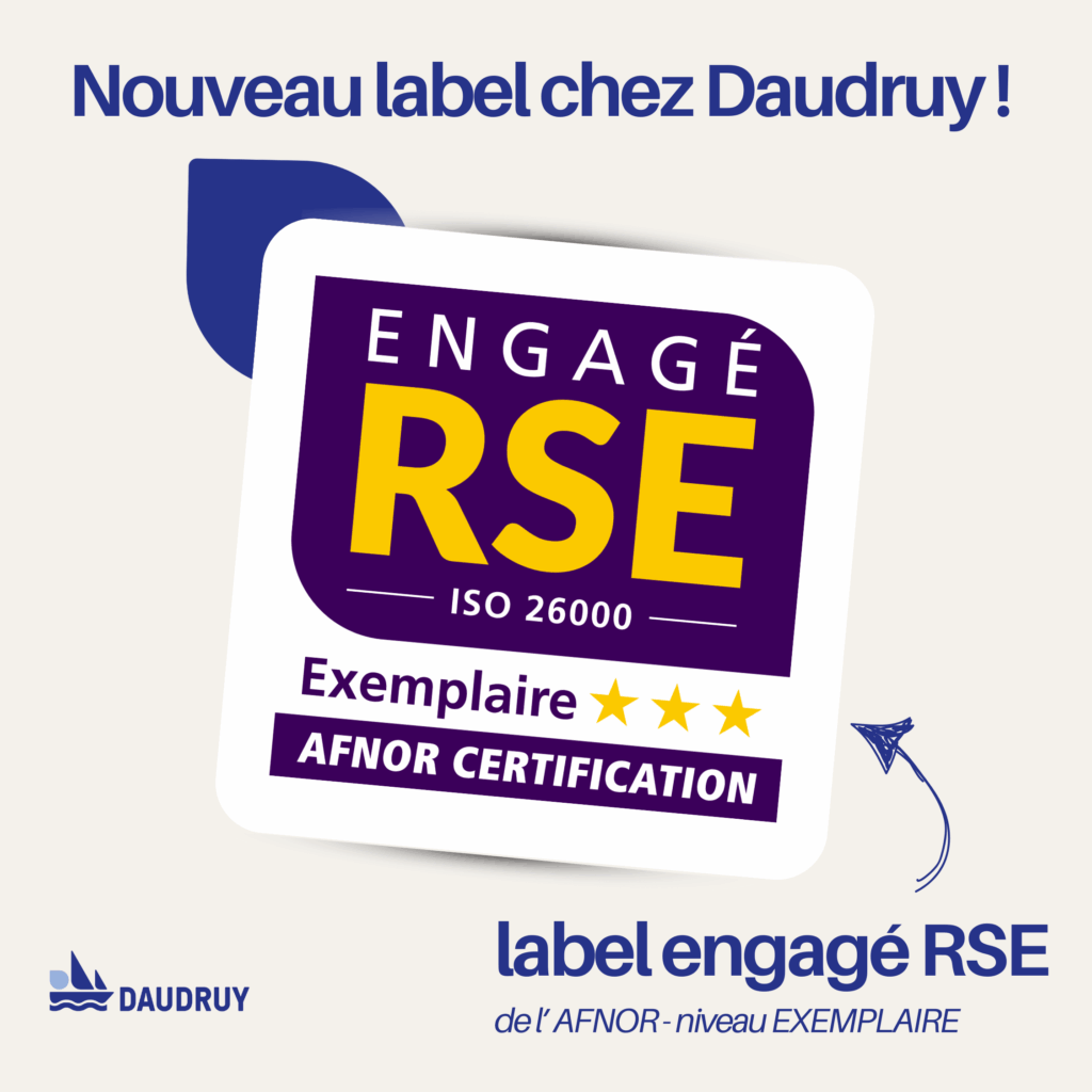 Daudruy est fier d’annoncer l’obtention du label Engagé RSE, délivré par AFNOR Certification, avec une note supérieure à 700/1000, correspondant au niveau Exemplaire, et ce dès sa première évaluation.